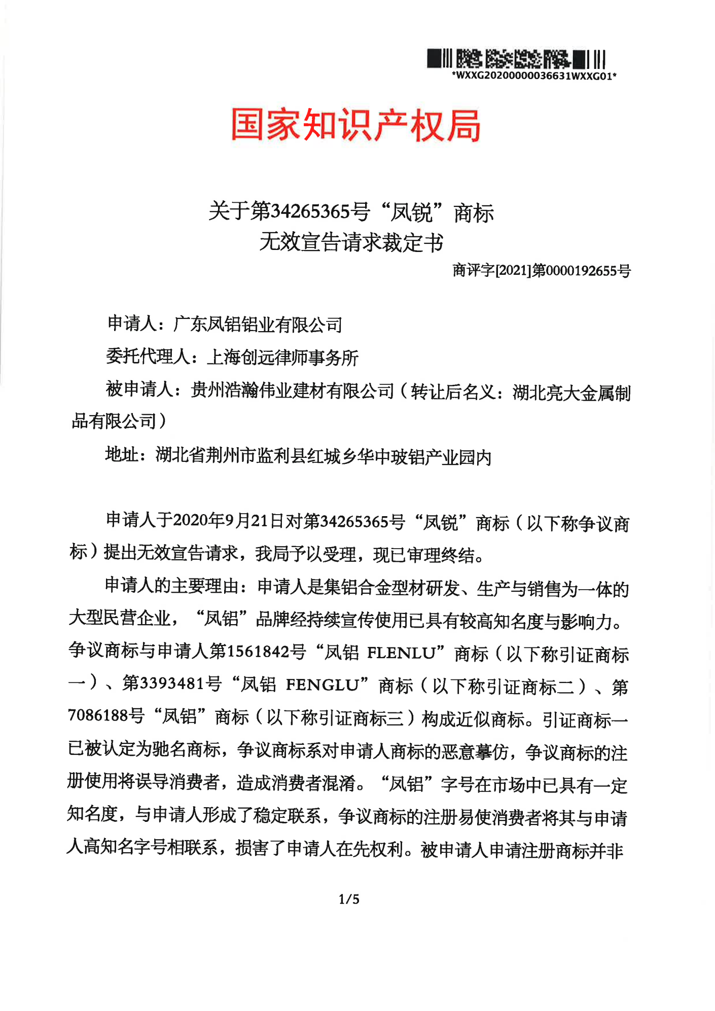 昌都辉知队 | 国家知识产权局:“凤锐”商标无效