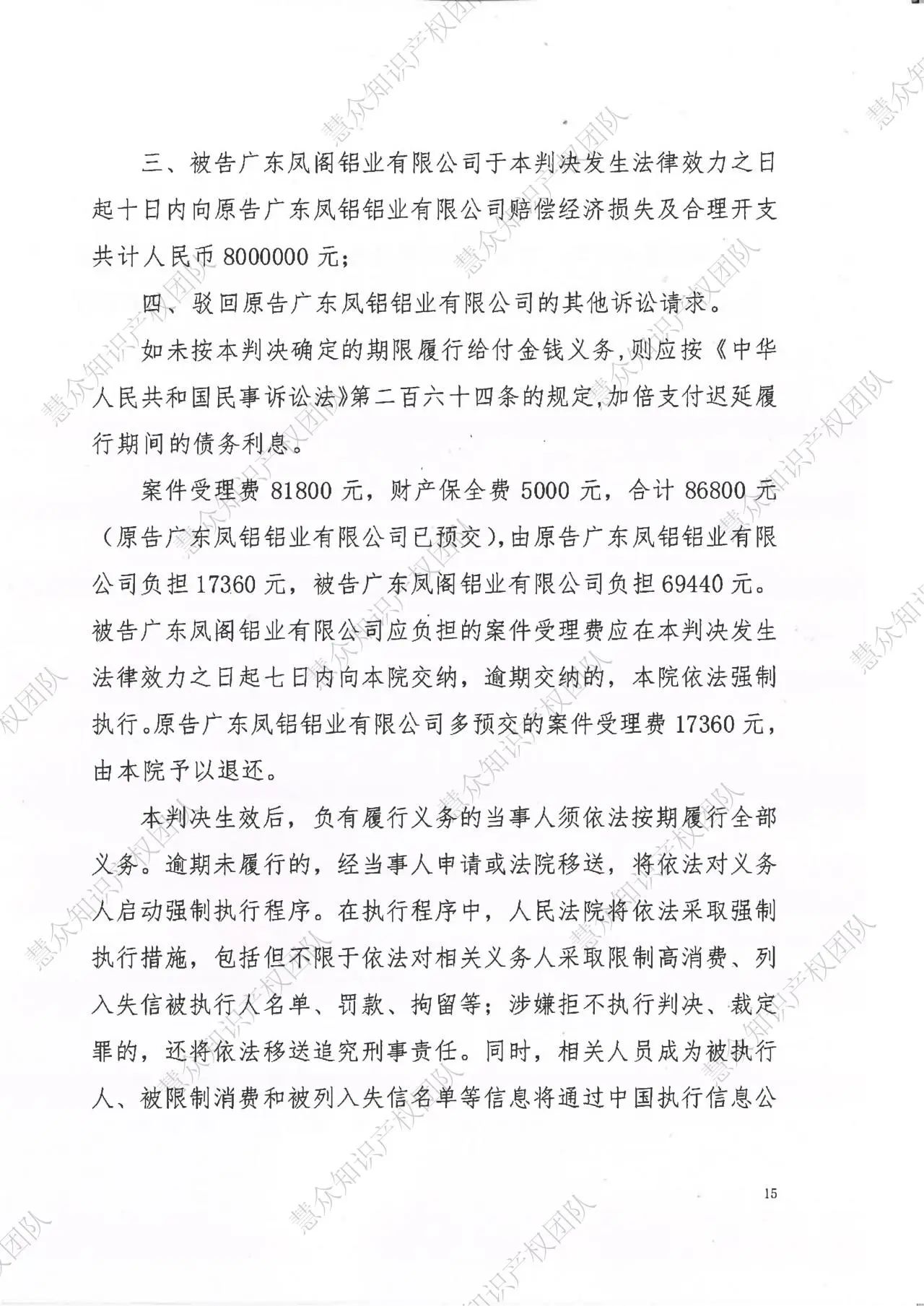 昌都判赔800万!辉知队代理“凤铝”商标维权案胜诉